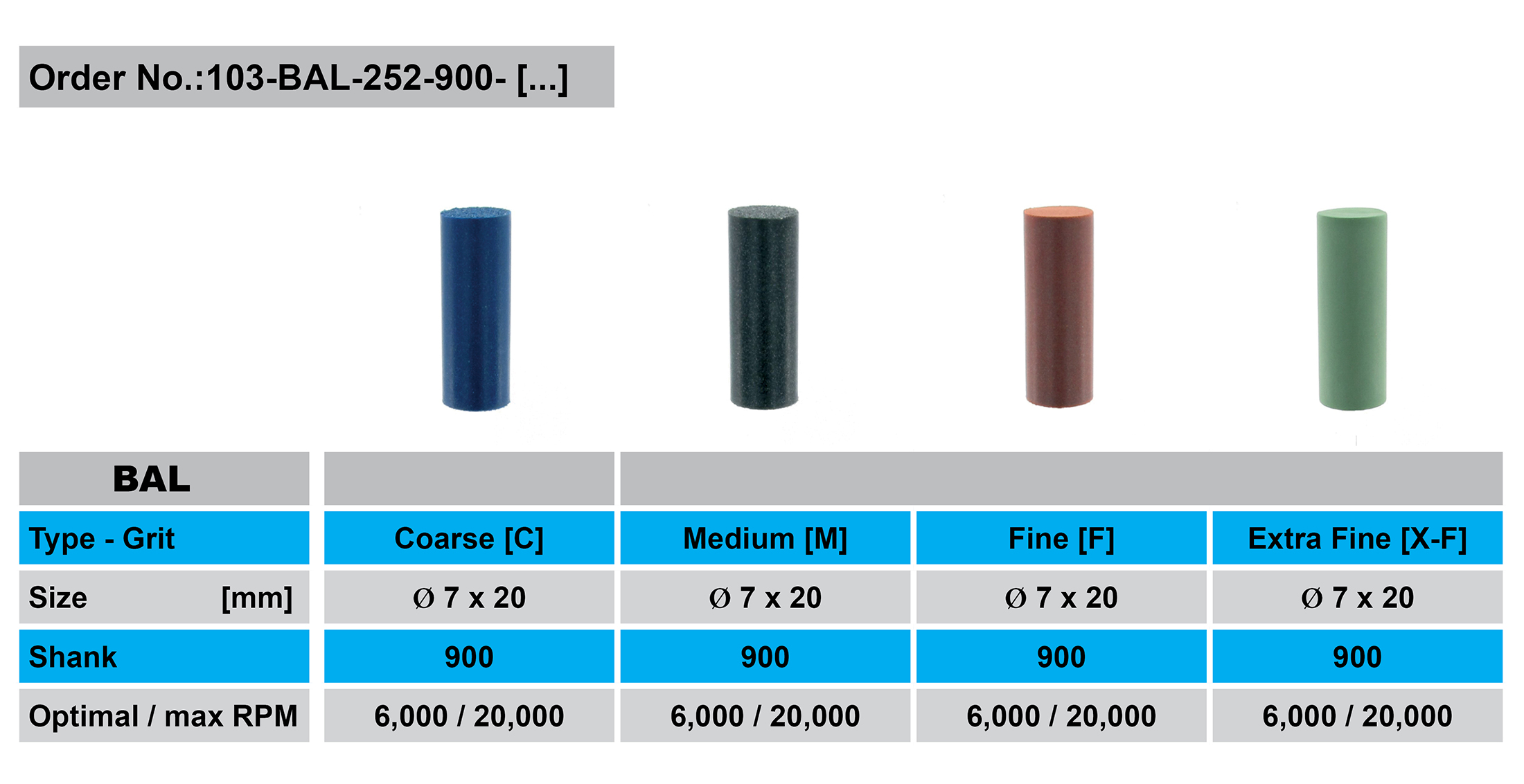 The BAL range is a tried and tested polishing system for cobalt-chrome, precious and non precious metals. The extra fine gives a high luster finish.