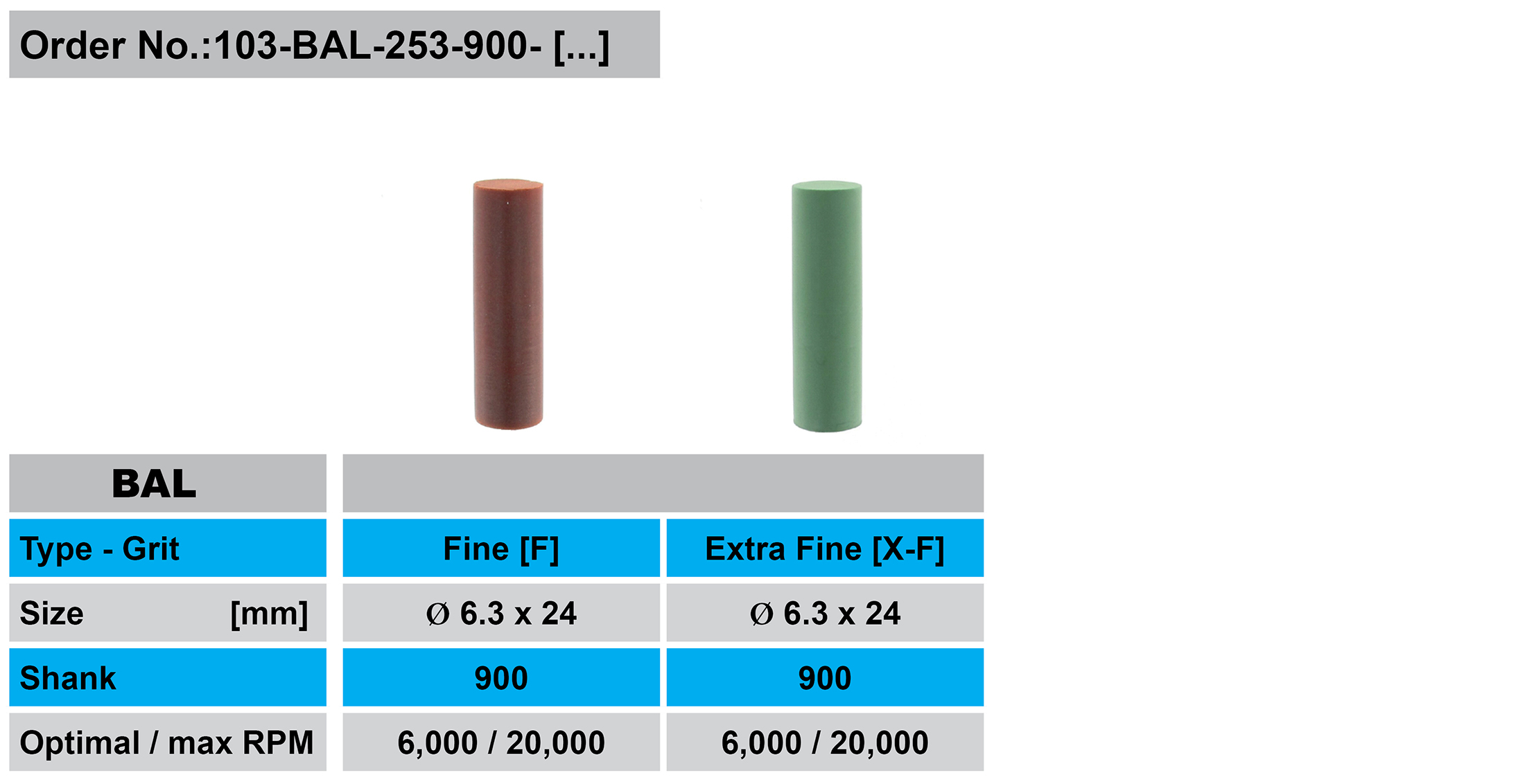 The BAL range is a tried and tested polishing system for cobalt-chrome, precious and non precious metals. The extra fine gives a high luster finish.