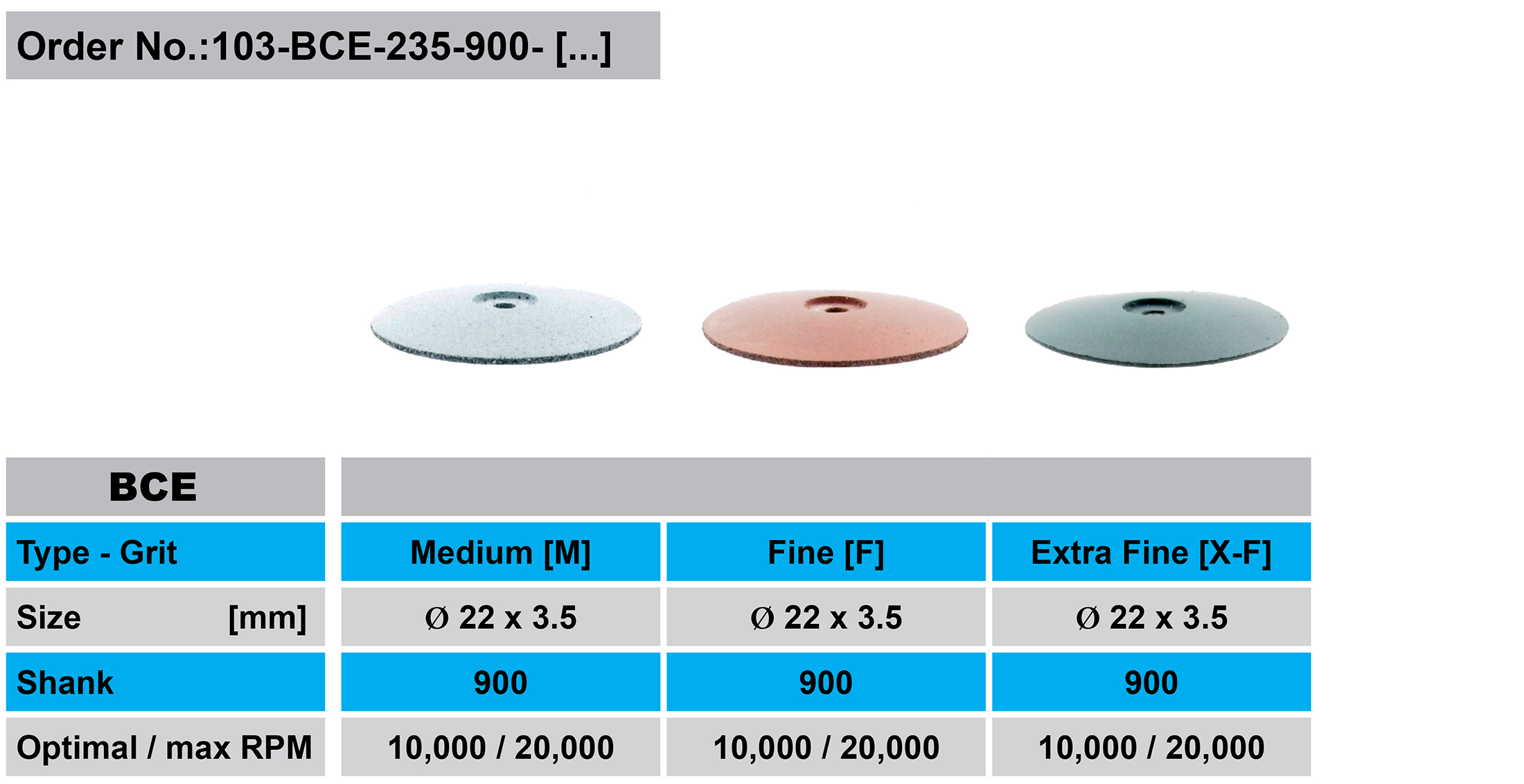 The BCE polisher range is designed for polishing ceramics right up to a high gloss. They are especially suited for polishing of the interface between ceramic and metal. The BCE polisher range is an economical alternative to diamond impregnated polishing systems.