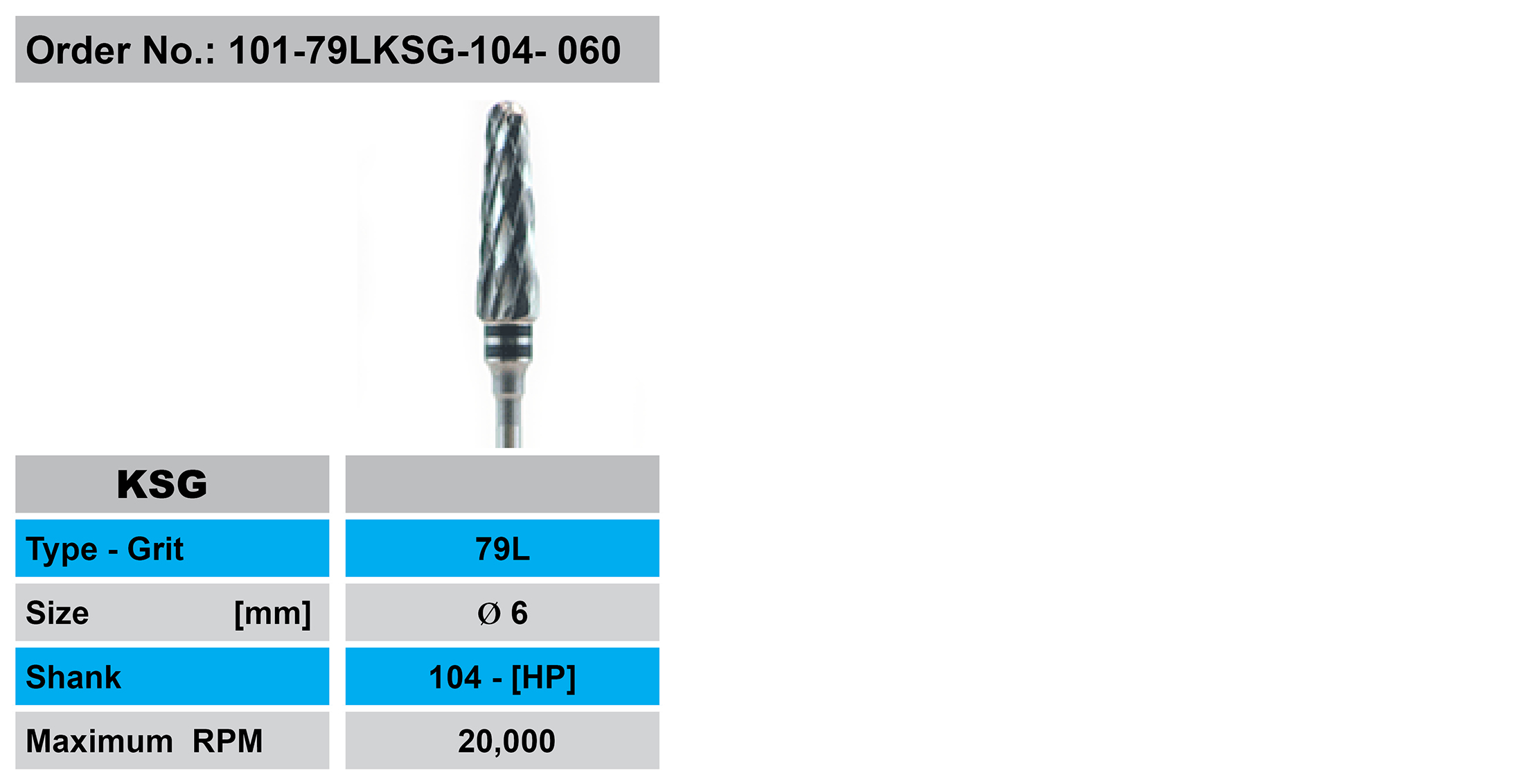Round end cone KSG, extra coarse cross cut, (double black ring). Suitable for bulk reduction of resins, resin based trays, wet and dry plaster.