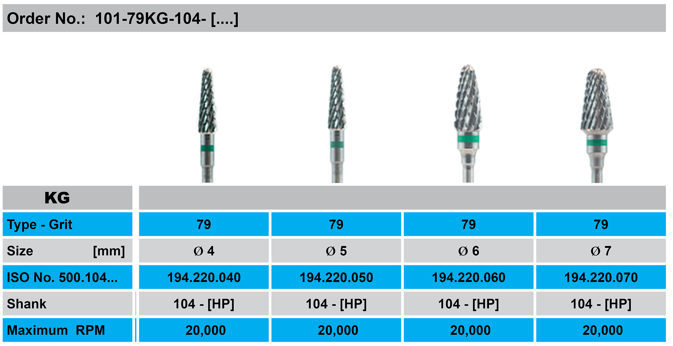 Round end cone KG, coarse cross cut, (green ring). Suitable for the efficient reduction of resins and dry plaster.