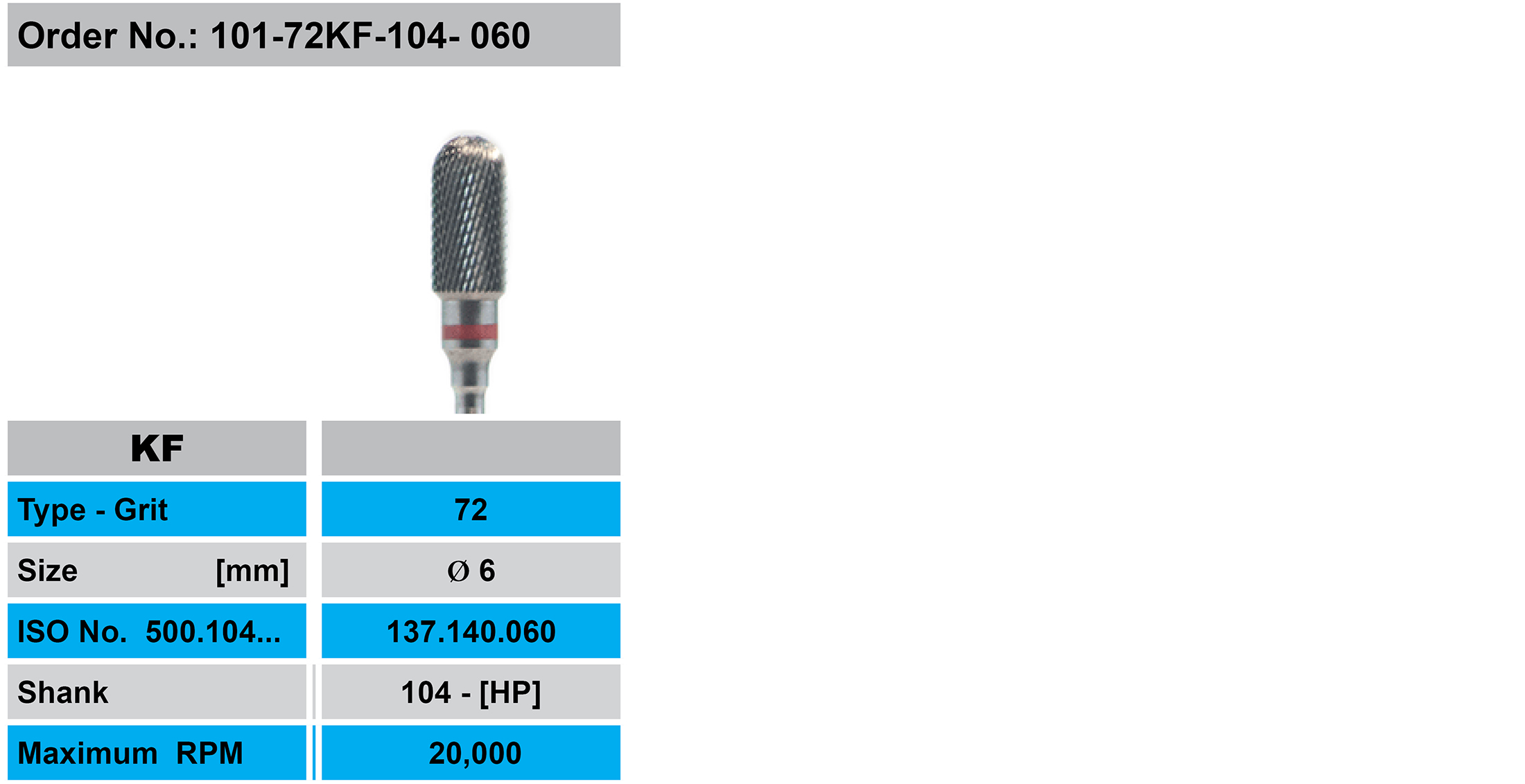 Round end cylinder KF, fine cross cut, (red ring). Suitable for the efficient reduction of ceramic, precious metal, non-precious metal, model metal, and veneer acrylic.