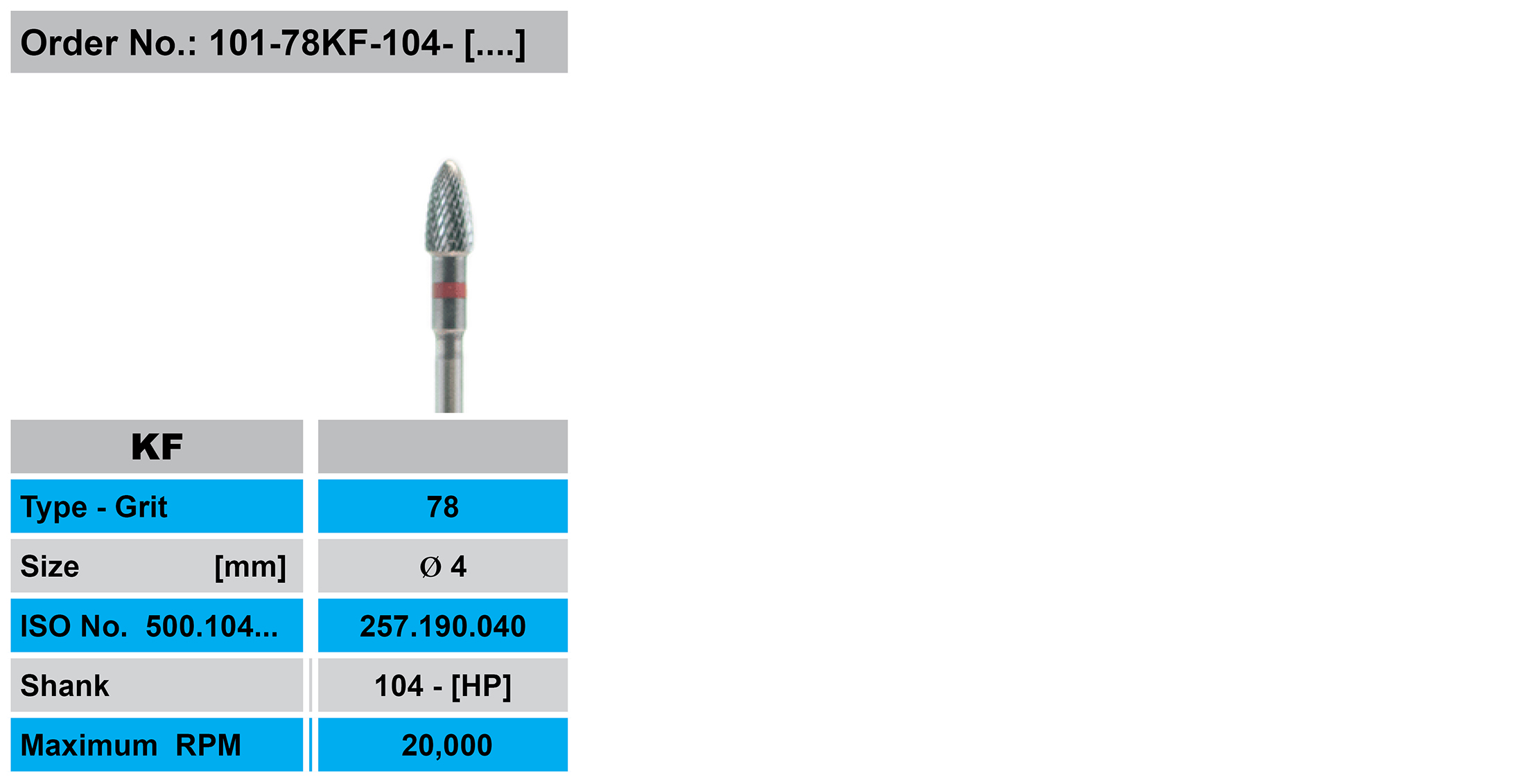 Pear KF, fine cross cut, (red ring). Suitable for the efficient reduction of ceramic, precious metal, non-precious metal, model metal, and veneer acrylic.
