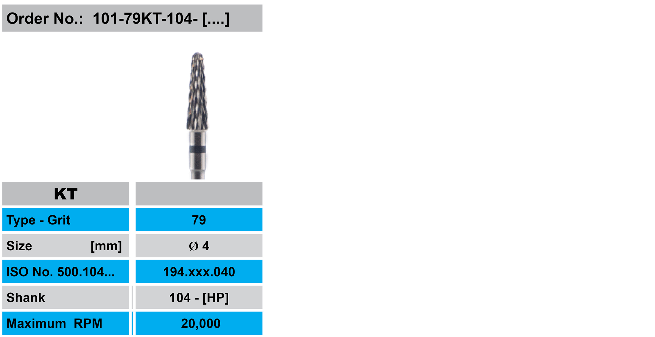 Round end cone KT, cross cut for titanium, (black ring). Suitable for the efficient reduction of titanium, titanium alloys and non-precious metal alloys.