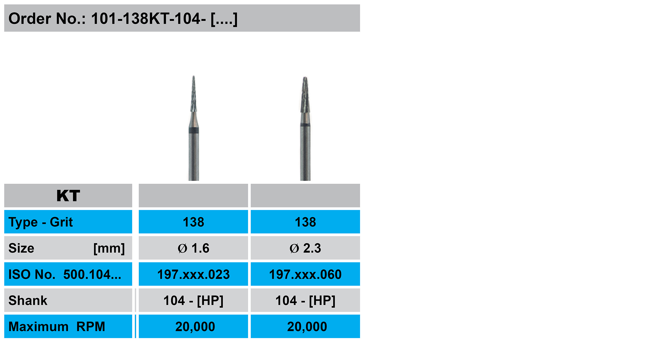 Cone KT, cross cut for titanium, (black ring). Suitable for the efficient reduction of titanium, titanium alloys and non-precious metal alloys.