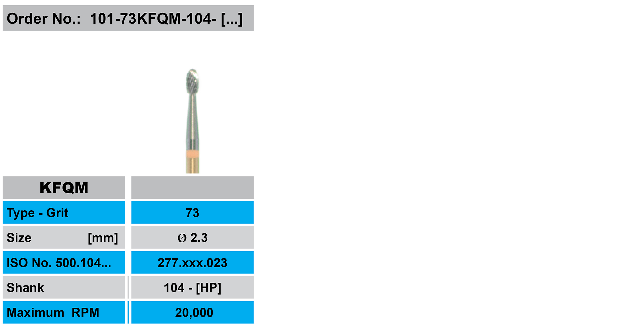 Flame KFQM cross cut fine with transverse, (golden shank with orange ring). suitable for the efficient reduction of precious metal, non-precious metal, and model metal.