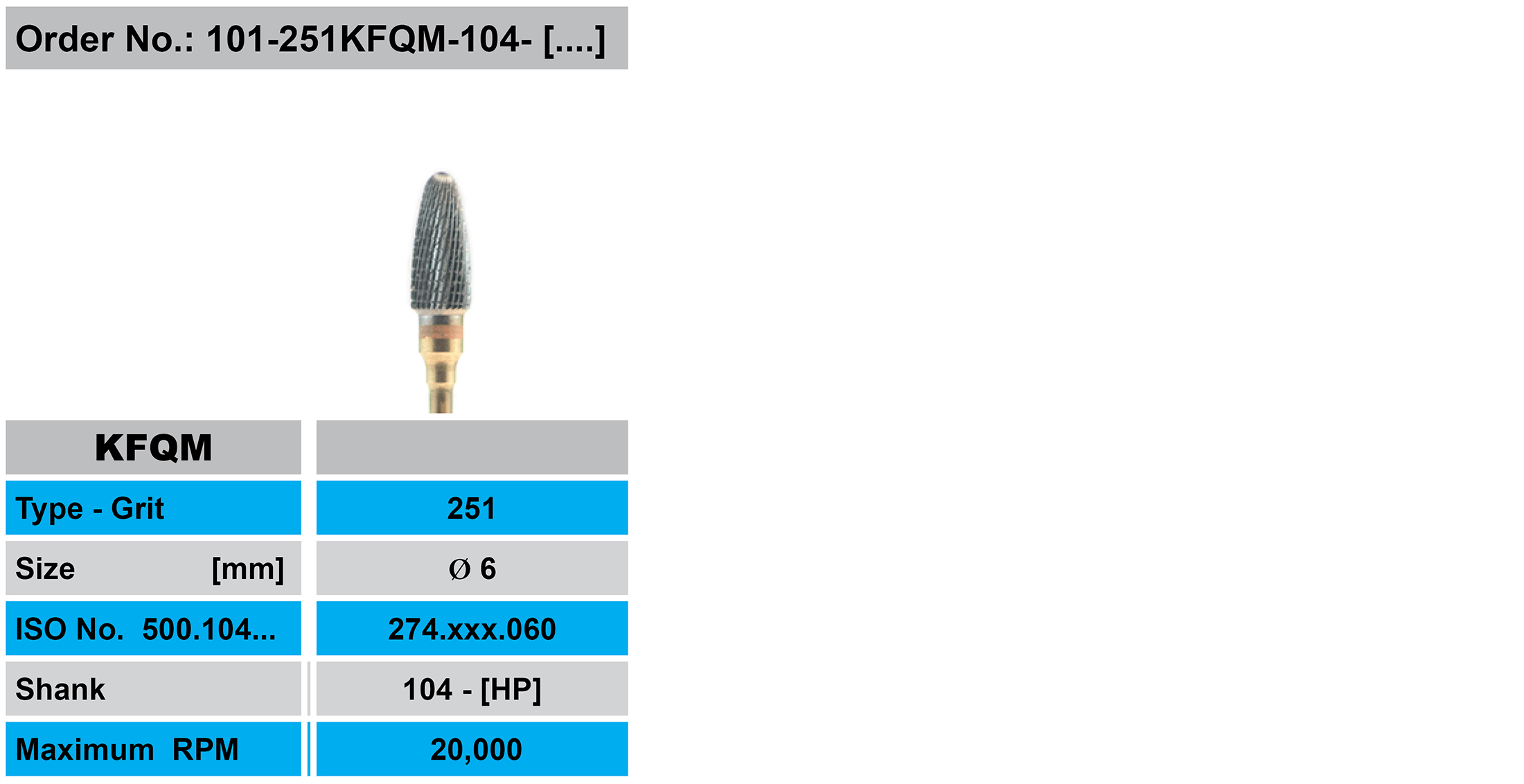 Flame KFQM cross cut fine with transverse, (golden shank with orange ring). suitable for the efficient reduction of precious metal, non-precious metal, and model metal.