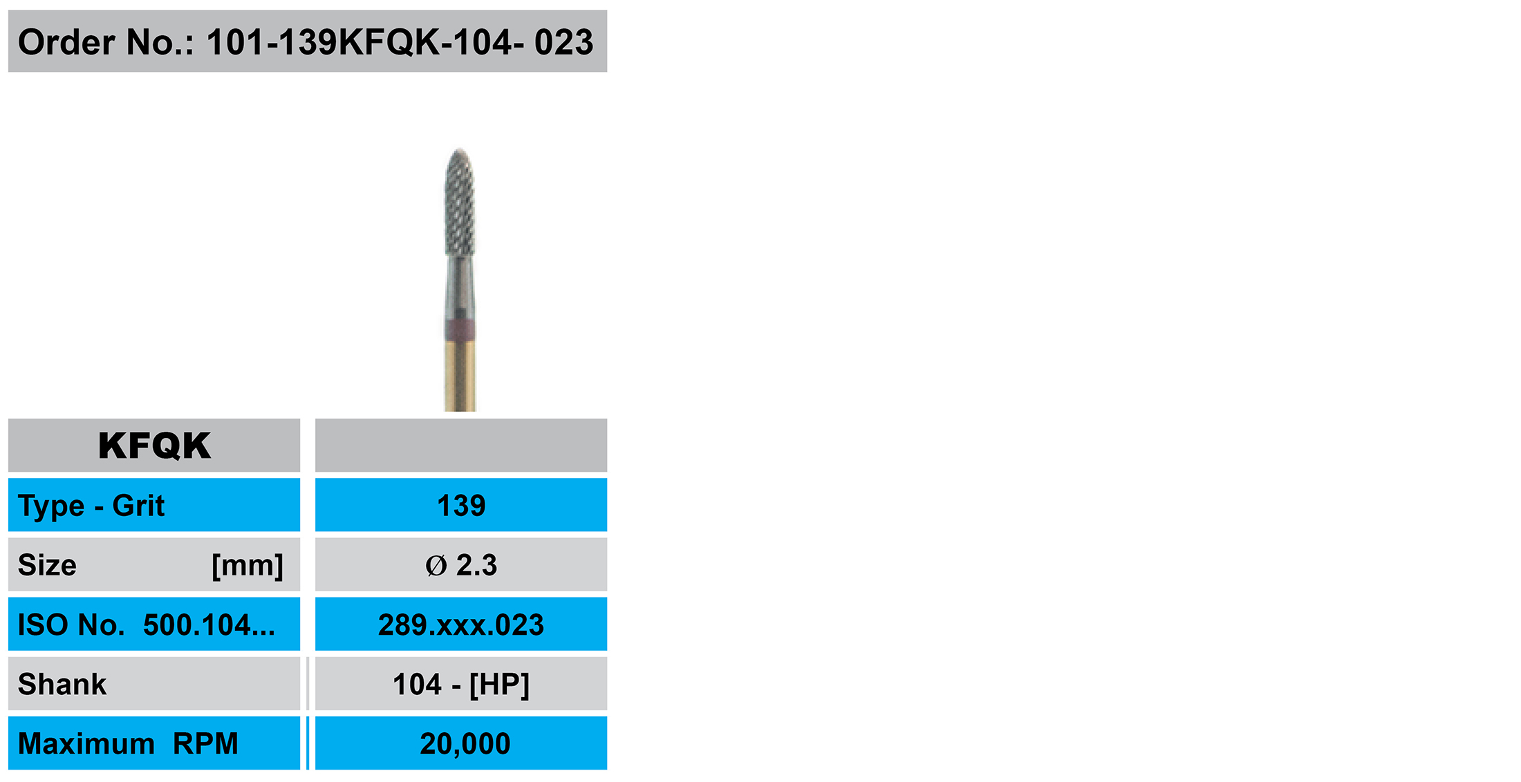 Torpedo KFQK cross cut ultra-fine with transverse, (golden shank with purple ring). Suitable for the efficient reduction of ceramic, and acrylics.