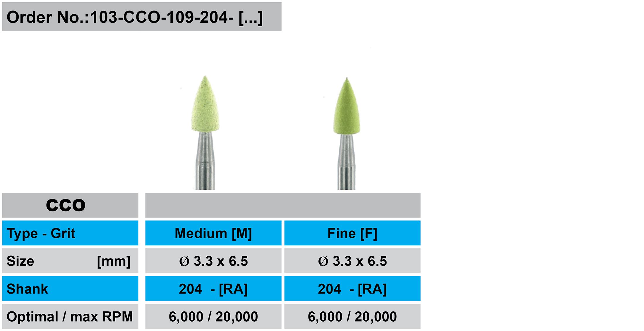 The CCO range is a durable 2 step economical polishing system without diamond. It is designed for use on composites.