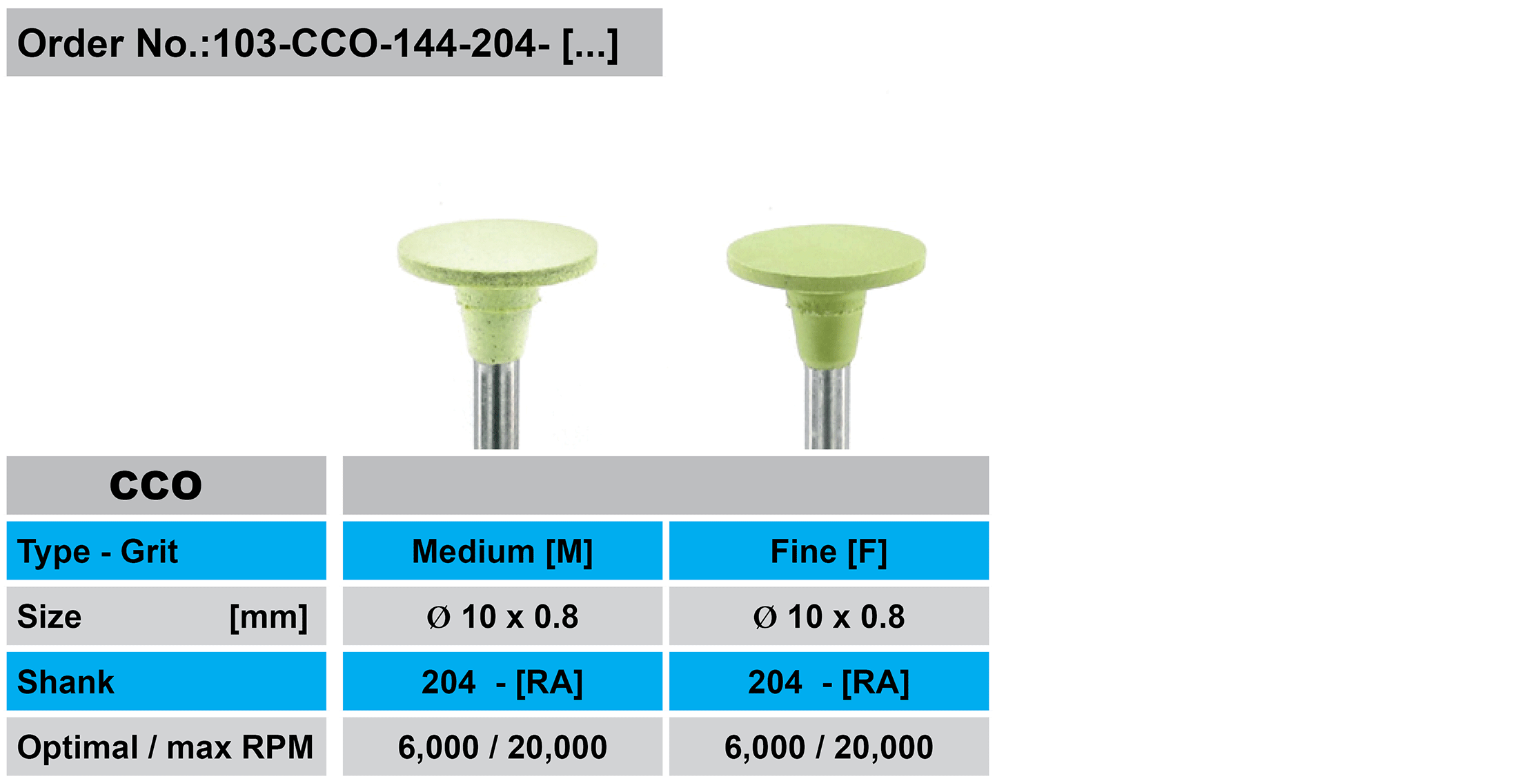 The CCO range is a durable 2 step economical polishing system without diamond. It is designed for use on composites.