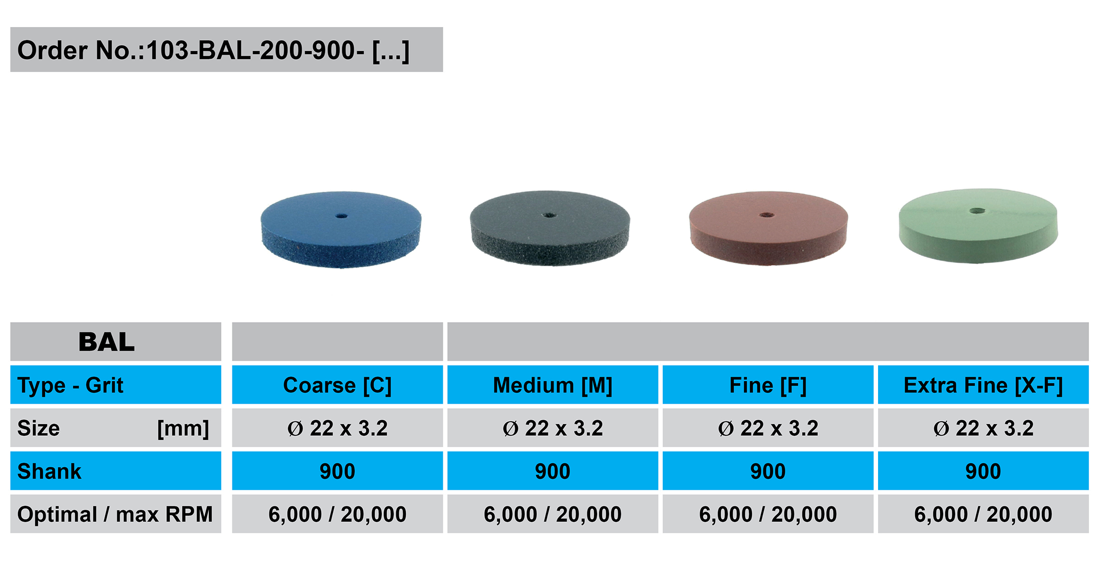 The BAL range is a tried and tested polishing system for cobalt-chrome, precious and non precious metals. The extra fine gives a high luster finish.